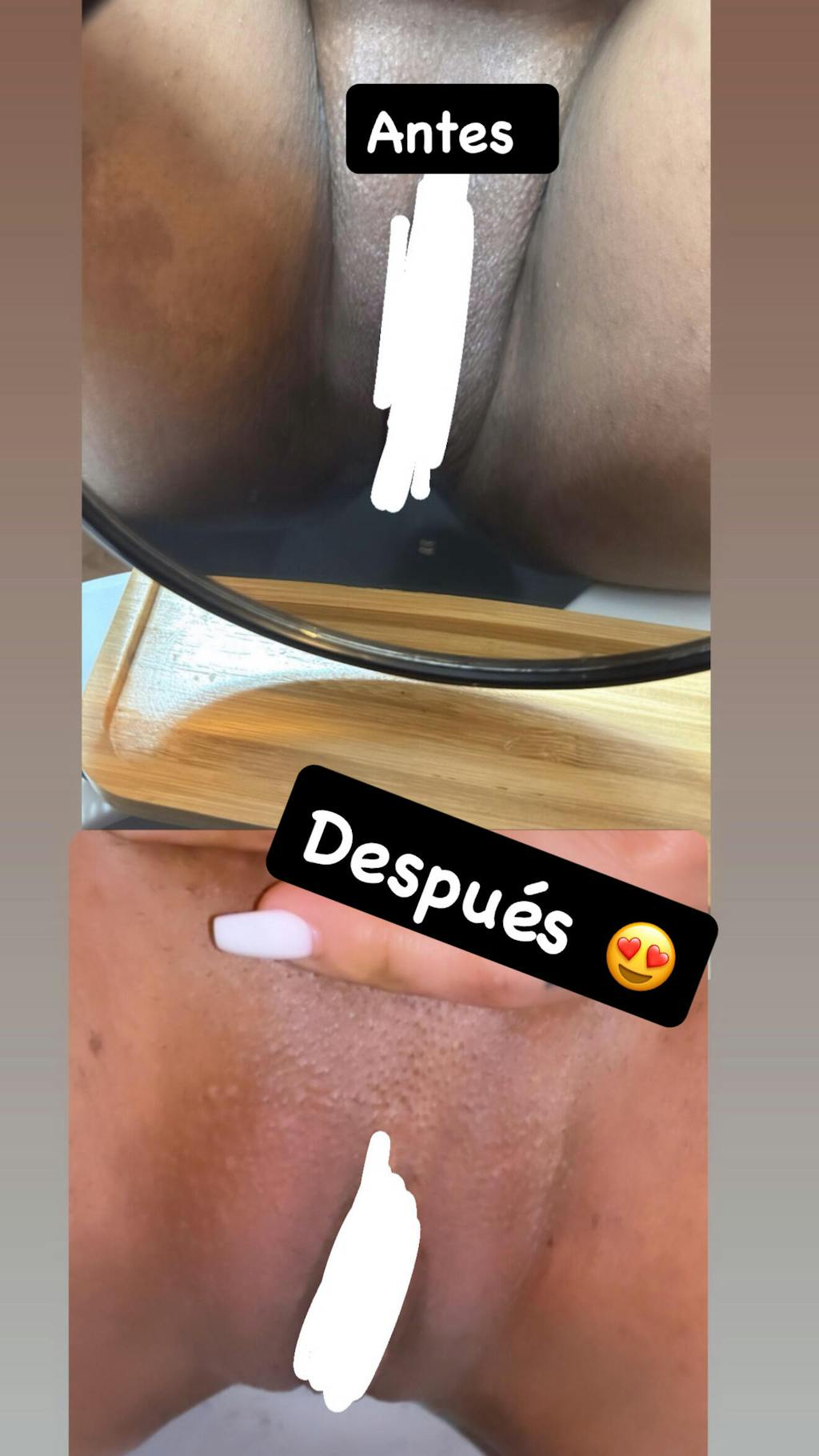 Desde niña mi inseguridad siempre fue mi zonas íntimas oscura 😞 me sentía triste y no tenía seguridad en mis relaciones íntimas, pensé nunca lograr aclarar mis zonas porque aparte también tenía una mancha de nacimiento pero todo cambió cuando me apareció un anuncio de este producto, después de 13 secciones de láser con 1 solo tratamiento logré un antes y después increíble 😍🥰❤️🔋💘